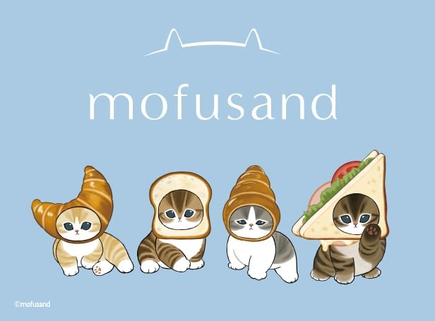 "mofusand" is a popular illustration featuring fluffy cats in costumes. The cute and slightly surrealistic cat characters illustrated by "Juno," active mainly on social media platforms, are now available as "Bread-Meow". This original collection is designed in the image of a fashionable bakery.